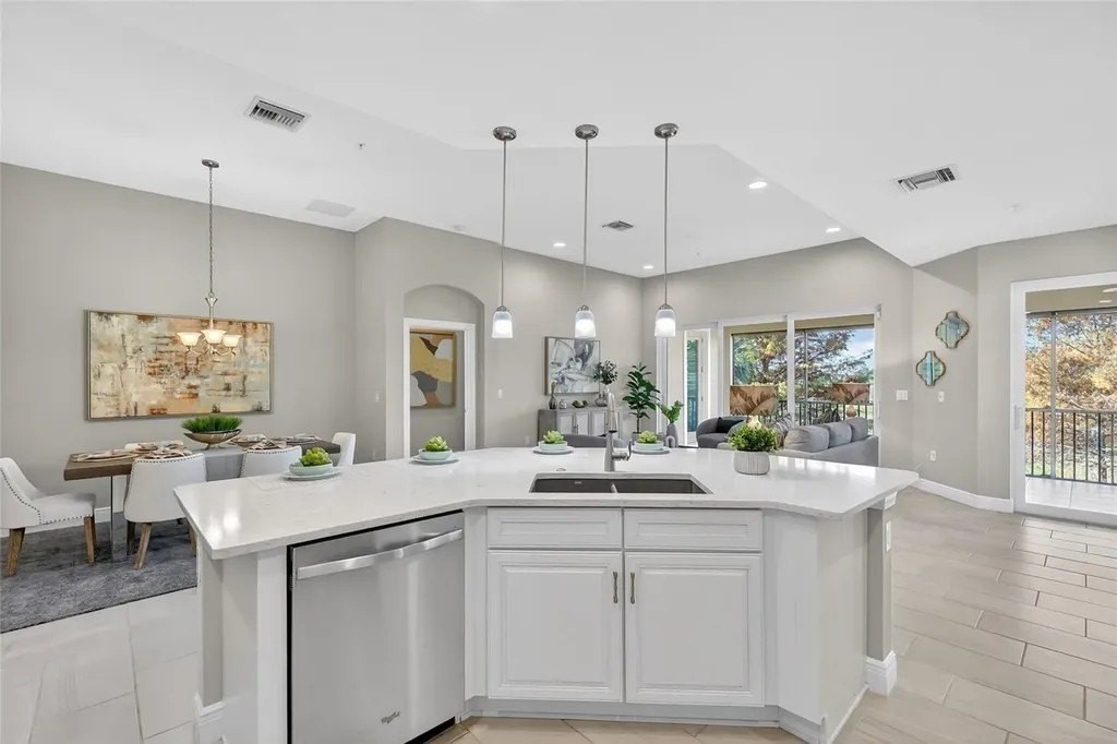 Now is your opportunity to own a top-floor residence with private in-unit elevator and lake view in the highly sought-after Clubside community of Country Club East-where convenience, light, and privacy rise to the occasion. This spacious condo offers three bedrooms, two baths, and an oversized den, perfectly suited for a home office, media room, or overflow guests. Hurricane-impact windows provide peace of mind, while a rare private in-unit elevator-one of the most desirable features in Clubside-delivers effortless access directly to your home, opening to a gracious upper-level landing that sets the tone for easy living. Inside, the expansive open-concept floor plan is bathed in natural light, enhanced by its end-unit position and elevated vantage point. The living and dining areas flow seamlessly, framing serene lake views that bring a sense of calm to everyday life. Whether hosting friends or enjoying a quiet morning coffee, the space feels airy, relaxed, and unmistakably Florida. Located within the gated enclave of Country Club East, Clubside residents enjoy access to multiple resort-style pools, a fitness center, and clubhouse amenities, all just steps from home. Optional membership to the Lakewood Ranch Country Club unlocks championship golf, dining, tennis, pickleball, and an active social calendar. Just minutes from shopping, dining, medical facilities, and everything Lakewood Ranch is known for, this exceptional home offers a lock-and-leave lifestyle that feels elevated, effortless, and endlessly inviting-where paradise isn't a vacation, it's the address.